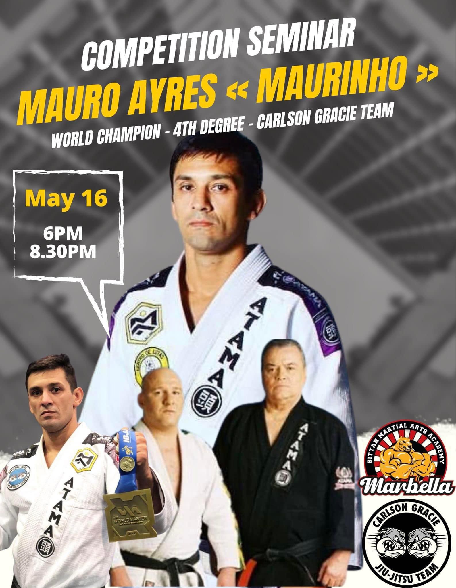 Por primera vez en Marbella viene directamente desde Brasil Mauro Áyres MAURINHO campeón mundial, cinturón negro 4º dan de bjj