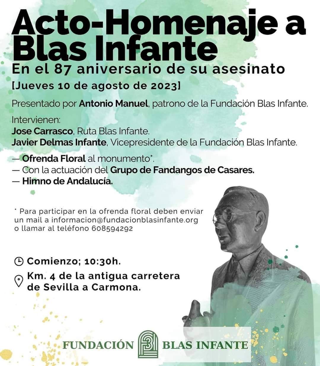 Según informa el Ayuntamiento de Casares en sus Redes Sociales, el acto homenaje al padre del andalucismo histórico, Blas Infante,