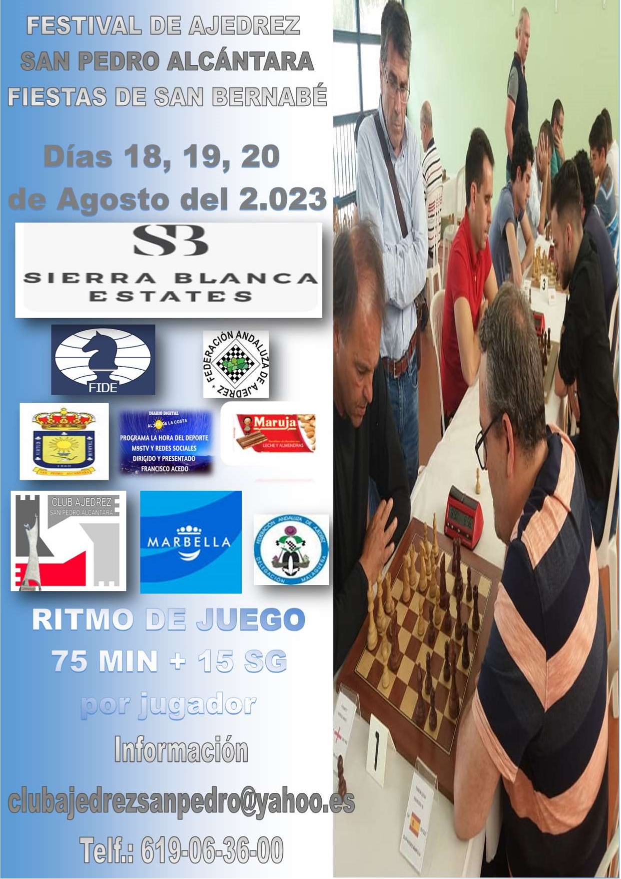 Buen nivel de participantes en el FESTIVAL DE AJEDREZ SAN PEDRO ALCANTARA-FIESTAS DE SAN BERNABE que se celebrará del 18
