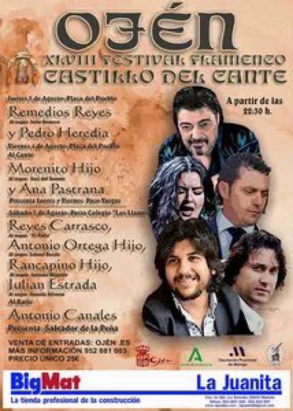 Reyes Carrasco, Rancapino Hijo, Antonio Ortega Hijo, Julián Estrada y al baile Antonio Canales, el próximo 5 de agosto en