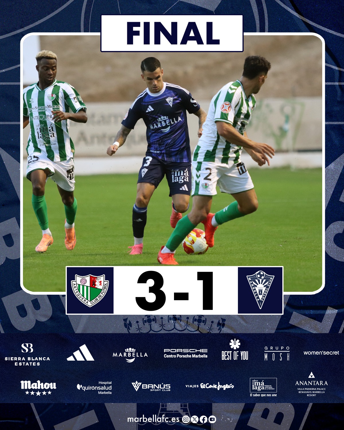 Derby provincial en El Mauli entre el Antequera y el Marbella, y como en la pasada campaña, derrota blanca. Hoy