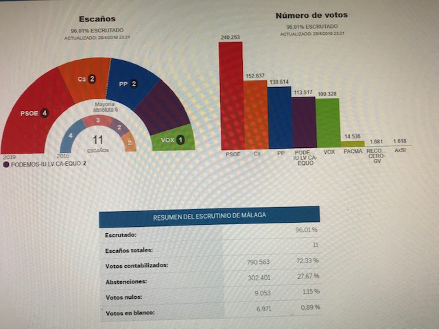 El PSOE se ha convertido en el partido más votado en la provincia de Málaga en las elecciones generales de