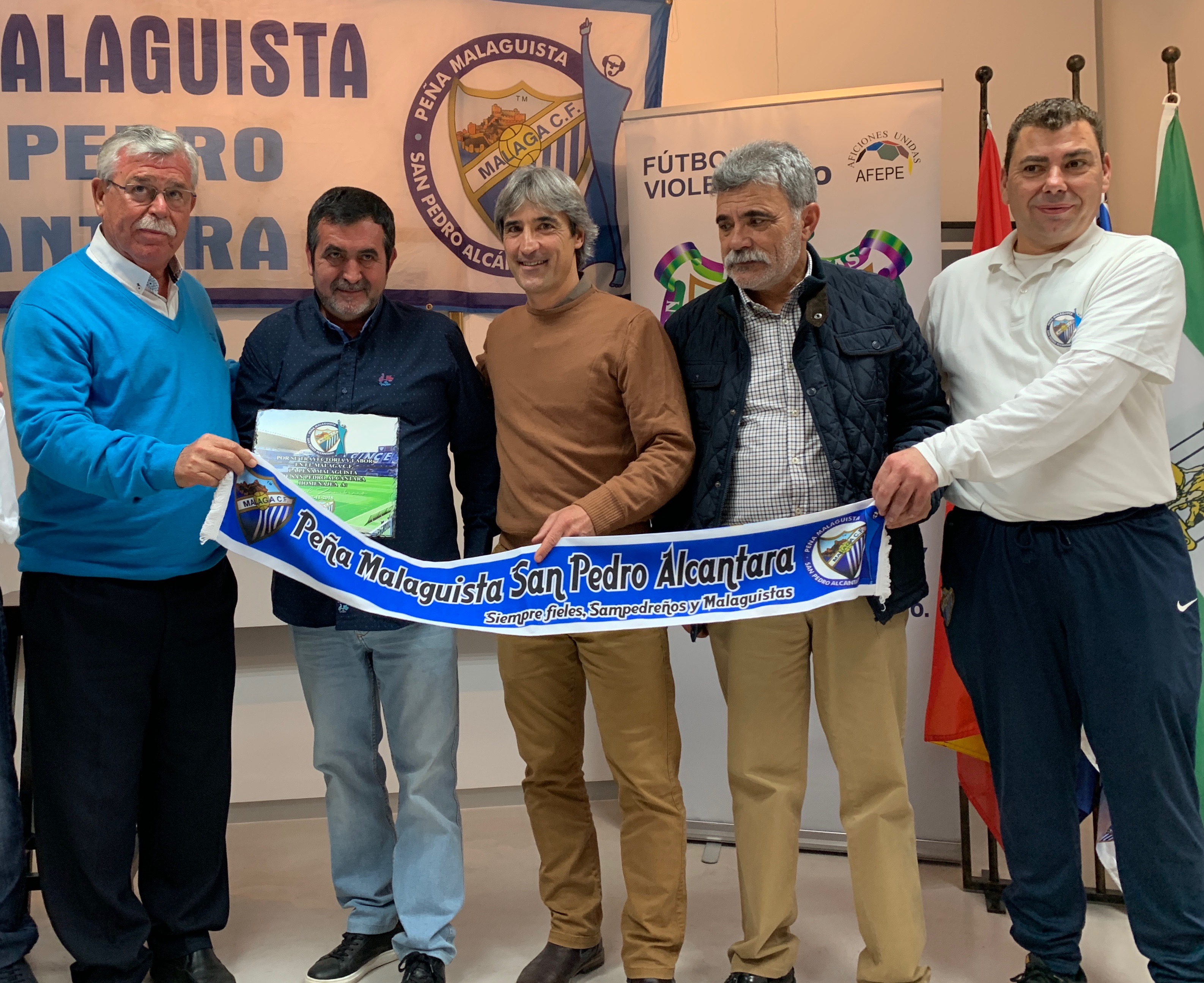 Miguel Zambrana, el mítico utillero del CD Málaga durante más de 30 años, ha sido homenajeado por la Peña Malaguista