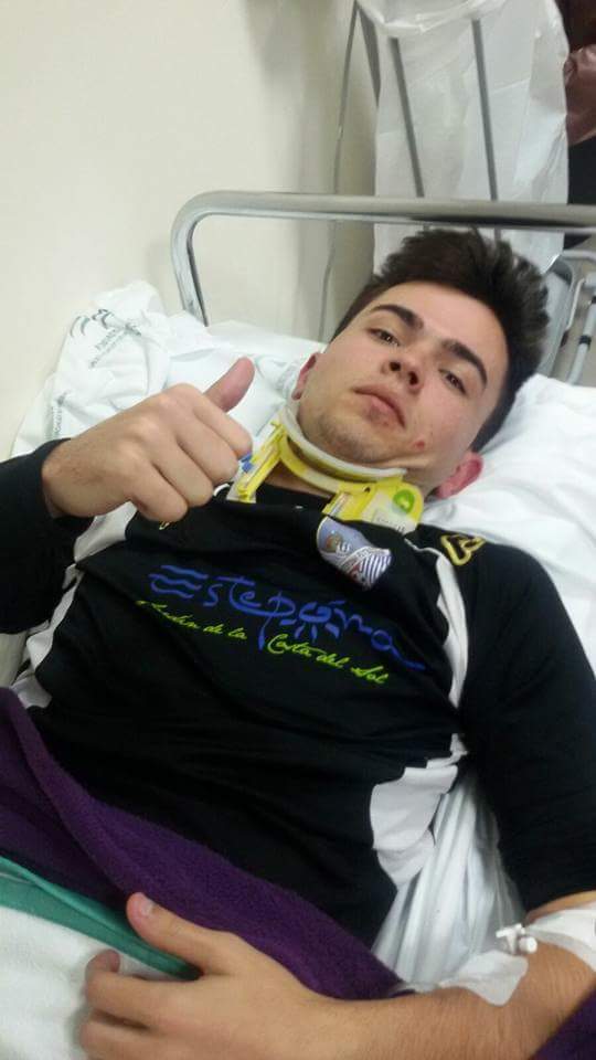 El portero del CD Estepona, Diego Gil Rivas, dio el susto en Linares pero se encuentra bien de salud