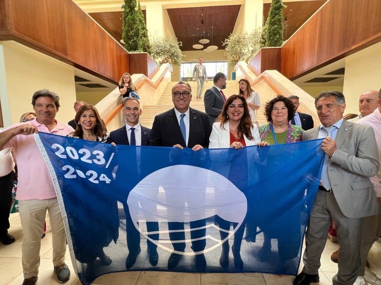 El alcalde de Benalmádena, Juan Antonio Lara, ha asistido a la entrega de las dos banderas azules que ondearán en