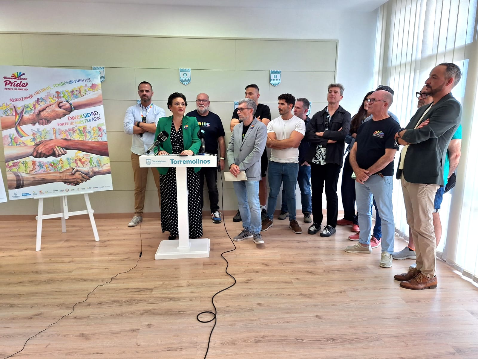 La alcaldesa de Torremolinos, Margarita del Cid, junto al concejal de Igualdad, Francisco García, y representantes de los colectivos que