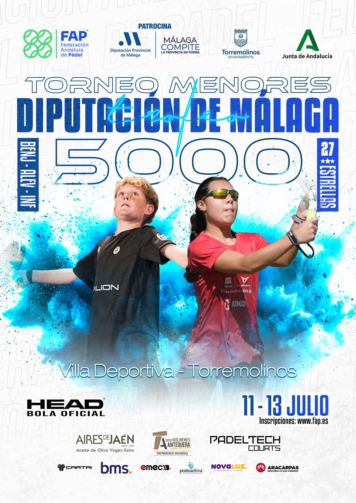 El Campeonato de Andalucía de Pádel Sub-23 Trofeo Diputación se celebrará este fin de semana en Torremolinos