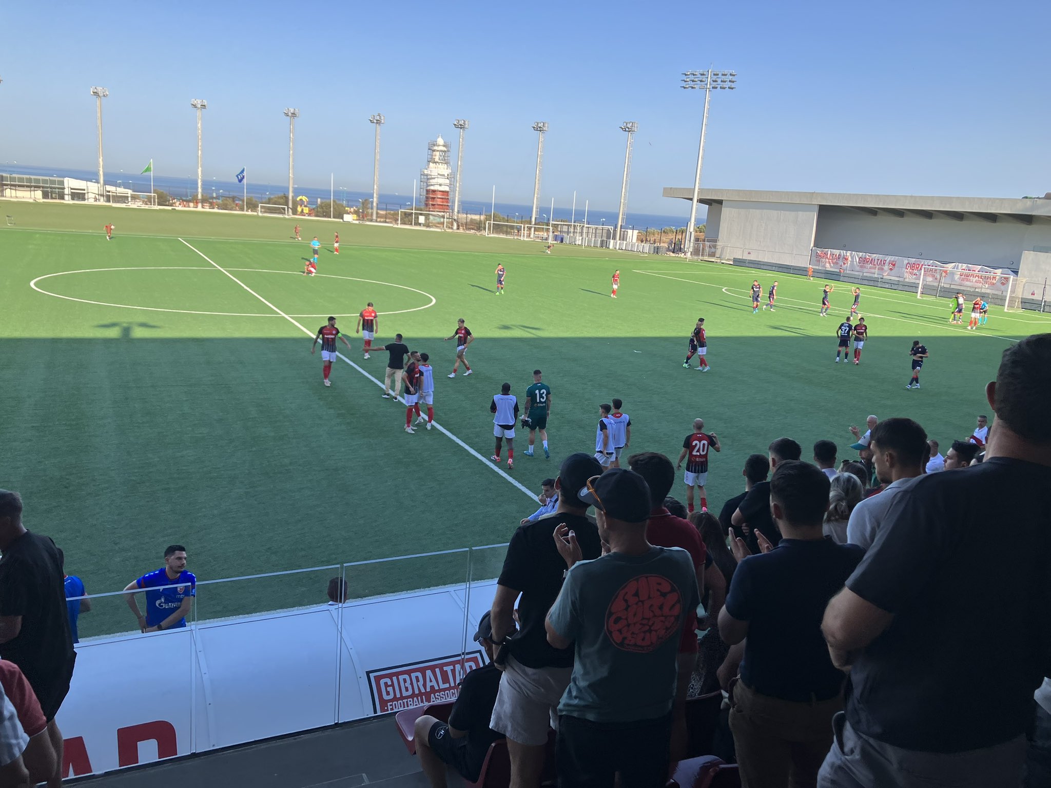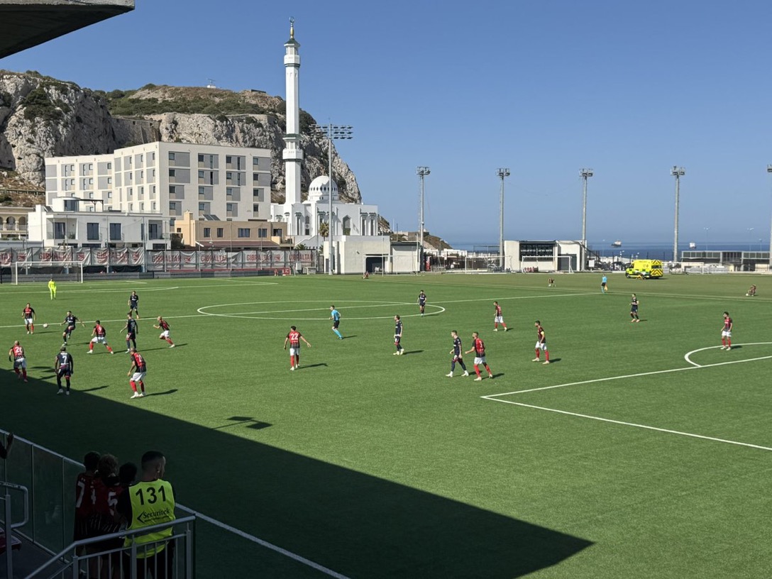En el segundo tiempo el campeón de Gibraltar salió con mucho coraje y dominando ante un Estrella Roja que bajó de intensidad y “enfrió” la tarde. Mucho centrocampismo y pocas ocasiones de gol en las áreas.
