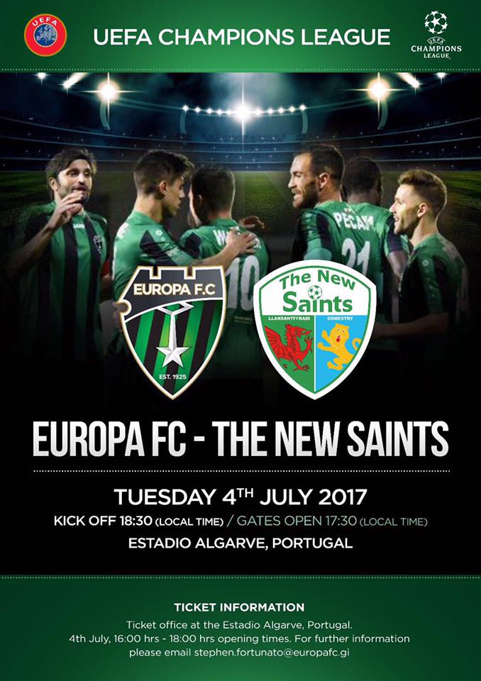 Este martes( 19´30 h) el campeón de la Liga de Gibraltar, el Europa FC, puede hacer historia y pasar a la segunda ronda de la Champìons League. Los llanitos reciben en el Estadio Algarve de Portugal( su campo como local al no poder usar el Victoria Stadium) reciben al TNS8 The New Saints) de Gales. En la ida ganaron 2-1 y ahora son favoritos para entrar en la siguiente eliminatoria, donde jugarían ante el campeón de Croacia, el Rijeka.