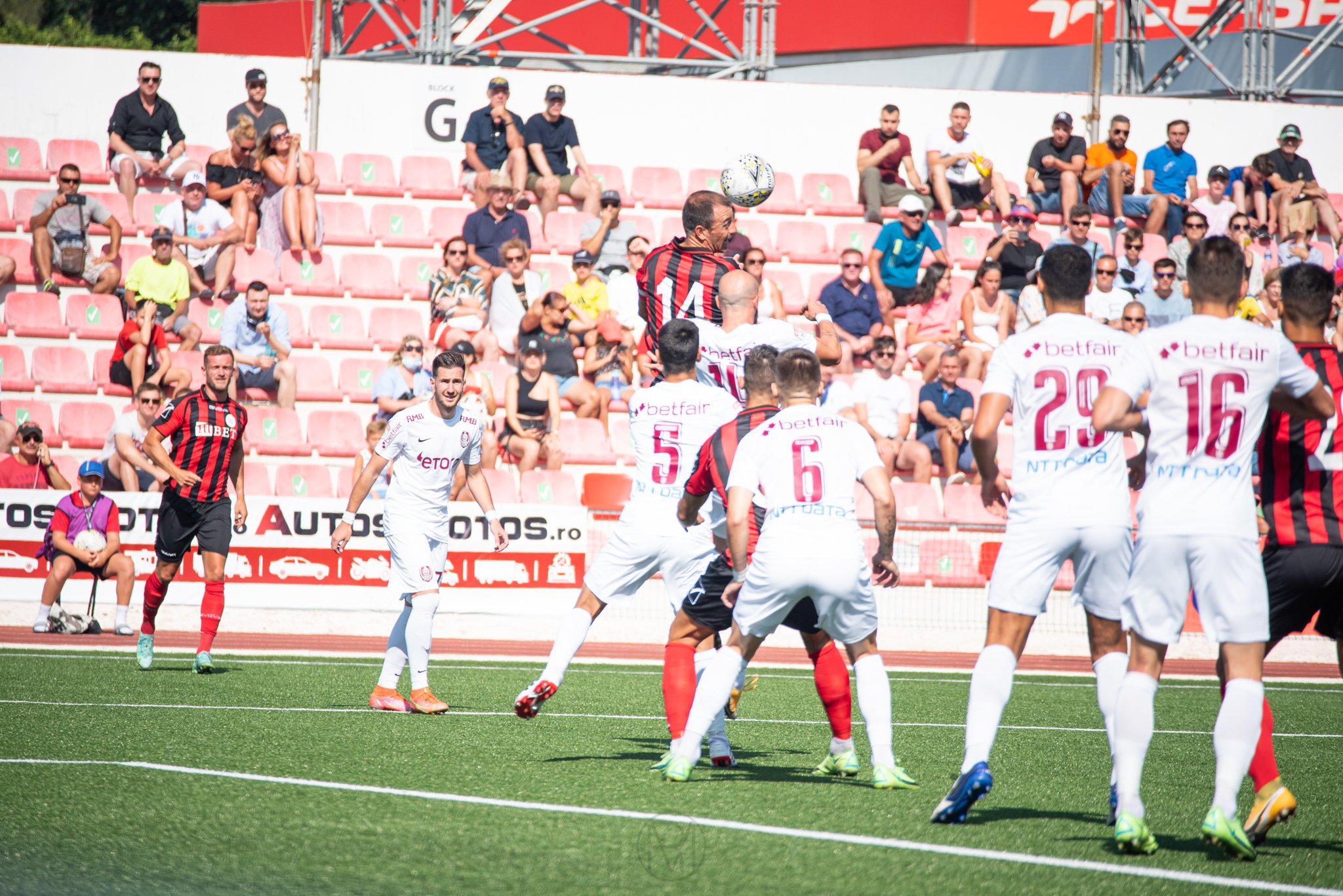 En la primera mitad fue mejor el campeón de la Roca, que salió muy serio atrás y presionando a hombres claves rumanos. Con Liam Walker tocando bien el balón y buscando a Kike en ataque poco a poco el Lincoln aclaró que no le iba a ser fácil ganar al Cluj. El partido era muy igualado hasta que a los 45´ un pase de Liam era rematado a la red por Marcos Rosa. Delirio en el campo y tras el tiempo añadido de 4 minutos se llegó al descanso con el 1-0.