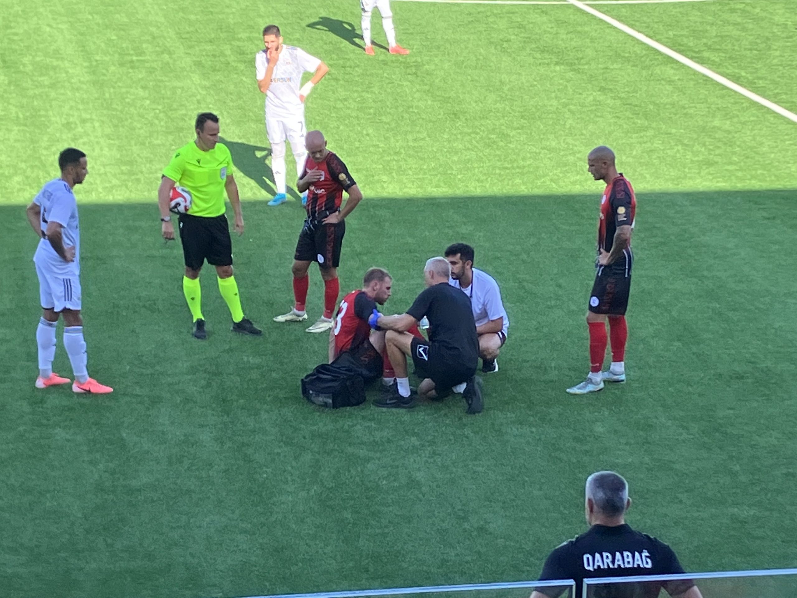 La primera parte tuvo dos fases distintas. En los primeros 30 minutos el choque fue igualado con mucho centrocampismo y pocas ocasiones de gol. A los 11´ una caída de Valarino en el área fue revisada y no señalada como penalty. En el último cuarto de hora dio un paso adelante el campeón de Azerbaiyán y Nauzet salvó el gol con dos grandes intervenciones( minutos 39 y 42 ). Aguantaba bien el Lincoln, pero en el descuento arrancando de una dudosa posición uno de los cuatro sudamericanos de los visitantes( el brasileño Juninho ) hizo el 0-1. Así se llegó con este jarro de agua fría al intermedio.