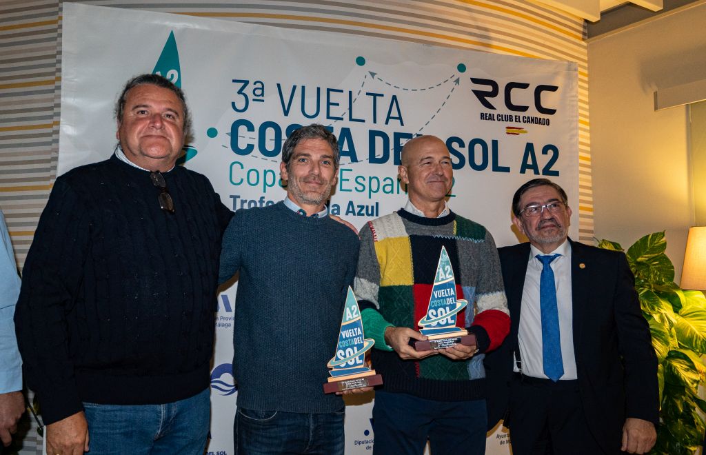 Durante la ceremonia se entregaban los trofeos al campeón de la regata, embarcación ‘Tareis T’ de Joaquín Angoloti y Ángel Medina con base en el RC El Candado, y al segundo y tercer clasificado, embarcaciones ‘Merdocq’ del RCM Santander tripulada por los andaluces Chato Domecq y Juan Luis Páez, tandem que también se llevó el premio a la ‘embarcación más rápida’, y el ‘Rayter’ de Ernesto Vera y Álvaro Pérez con bandera del RC Mediterráneo, tercero en su primera vez en la regata malagueña, última Copa de España y Campeonato de Andalucía de Crucero A2 de la temporada 2022..