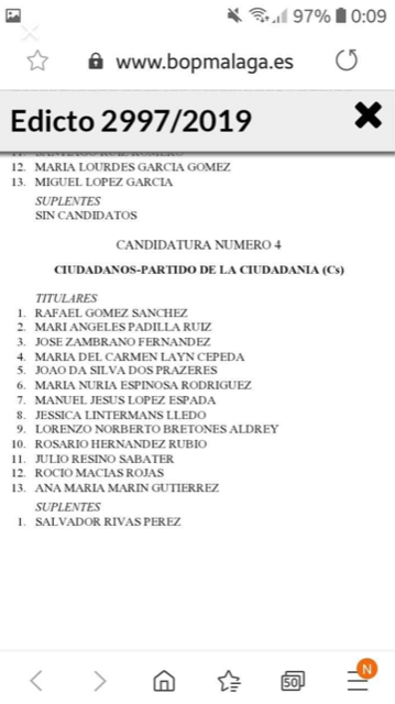 La lista está integrada por 13 personas y un suplente, aglutinando distintos colectivos sociales, culturales y empresariales del municipio. Como número 2 está María Angeles Padila( relacionada con distintos medios de comunicación en los últimos años) y José Zambrano como número 3. Teniendo en cuenta la importancia del turismo residencial en Benahavis, están integrados dos extranjeros en la lista en los puestos 5 y 8. Según Gómez «estamos trabajando desde hace tiempo y para nosotros es una tremenda inyección de moral que la ejecutiva nos haya dado el visto bueno a esta lista. Ahora es cuando comienza el más duro trabajo».