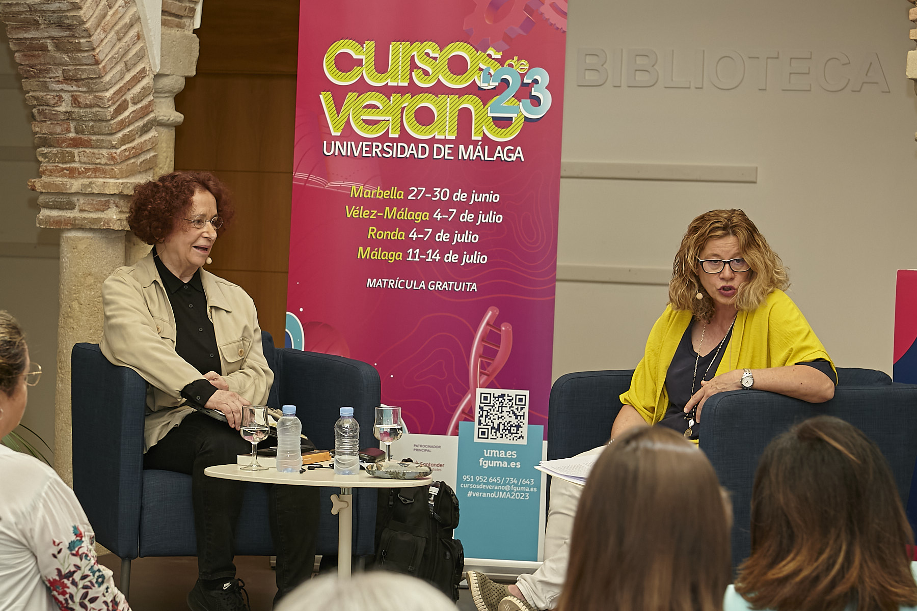 Tras la bienvenida oficial y el inicio de tres cursos en el Palacio de Congresos, la actividad formativa ha continuado con la conversación sobre geopolítica que la exministra de Asuntos Exteriores Ana Palacio ha mantenido con la catedrática de Derecho de la UMA Magdalena Martín, un encuentro celebrado en el céntrico espacio del Hospitalillo y que se ha retransmitido en directo por el canal de Youtube de la FGUMA. El diálogo ha contado con la presencia de la alcaldesa de la capital costasoleña, Mª Ángeles Muñoz, quien ha definido a la invitada como “una figura con mucha presencia internacional y una voz muy potente a nivel europeo”. “Ana ha llevado la política al más alto nivel y es un ejemplo absoluto para todo”, ha comentado la regidora a los medios que han cubierto la conferencia. Además, también ha aprovechado la ocasión para valorar la oportunidad que suponen los Cursos de Verano como una cita que lleva a la ciudad a representantes de renombre de todos los ámbitos.