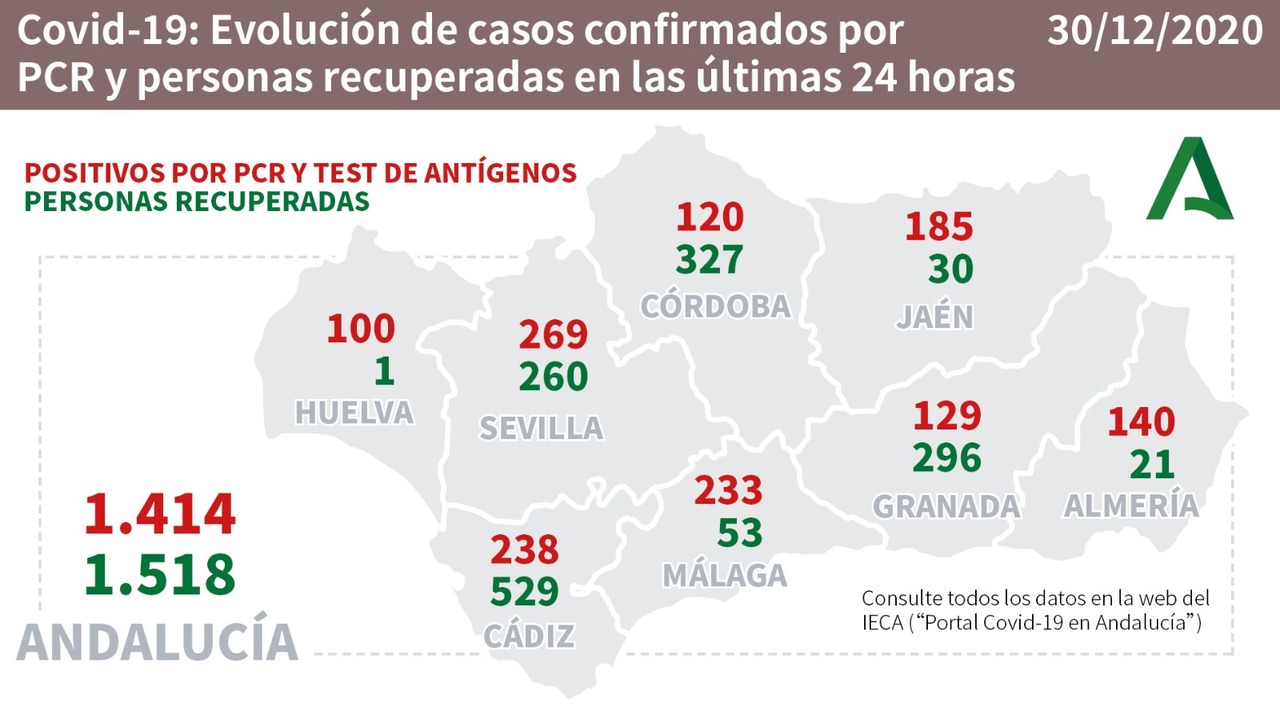 En toda Andalucía se han comunicado hoy 1.414 nuevos casos positivos( total de 260.000 personas) y 17 fallecimientos. .