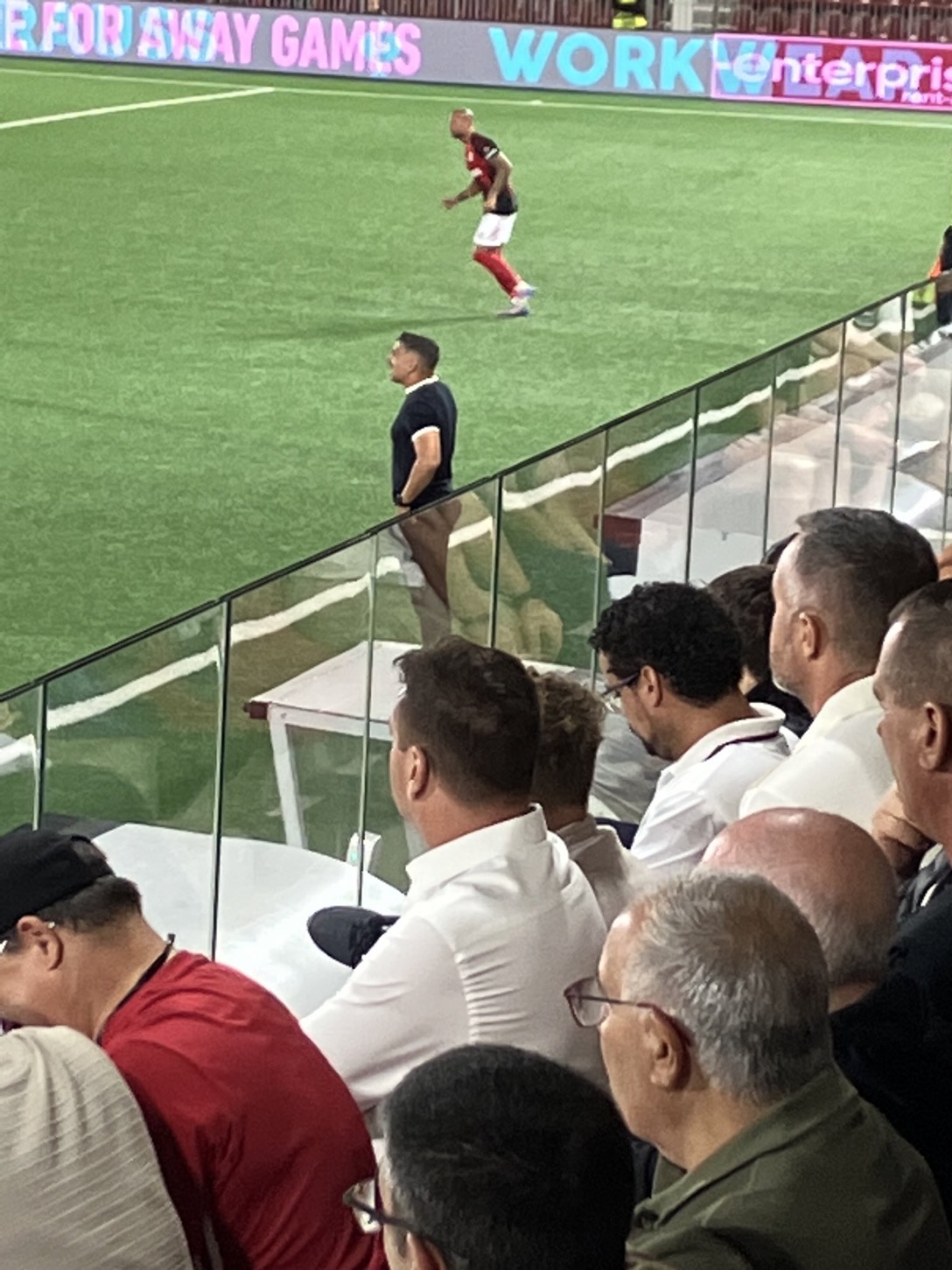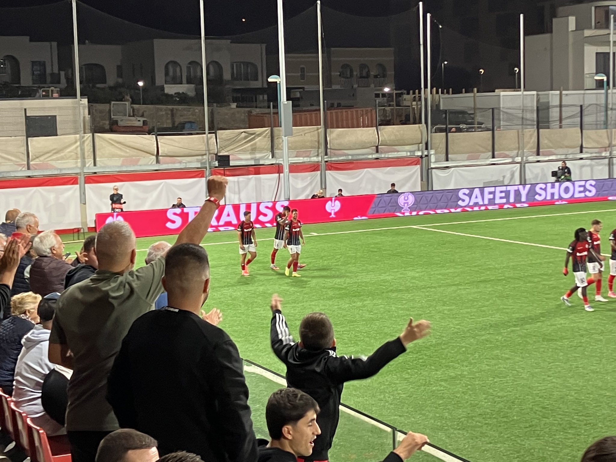 La primera mitad tuvo de todo. El Lech salió dominando pero el campeón de Gibraltar fue el que firmó las acciones de peligro. A los 13’ gran jugada de TJ De Barr y el balón se estrelló en el larguero. Tres minutos después una falta directa lanzada por Nano fue al lateral de la red. Los polacos volvieron a controlar el balón y Agnero se convirtió en protagonista con un cabezazo al larguero ( minuto 21 ) y un remate raso que detuvo Haskins( minuto 27 ). Pero todo cambio en el ultimo cuarto de hora con un mejor Lincoln y muy rápido arriba. Tras un posible penalty a De Barr( minuto 30 ) que no se señaló llegó el éxtasis a la grada cuando en el minuto 33 tras varios rebotes en el área el malagueño Kike Gomez envió el balón a la red. Era el 1-0. Los polacos estaban enfadados en el campo y su entrenador, Frederiksen, fue expulsado en el minuto 43. Al descanso se llegó con un justísimo 1-0 en el marcador.