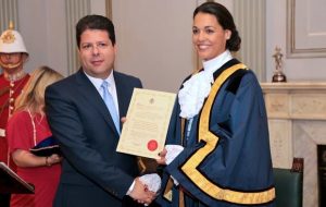 Hoy martes ha tenido lugar el acto oficial de la investidura de Kaiane López Aldorino como nueva alcaldesa de Gibraltar. La que fuera Miss Mundo había sido vicealcadesa en los últimos 18 meses y ahora sustituye en el cargo a Adolfo Canepa, presidente del Parlamento de Gibraltar. El acto se desarrolló en el Ayuntamiewnto de La Roca con la presencia de las máximas autoridades, entre ellas el primer ministro Fabian Pìcardo. En su discurso, Kaiane anunció que Julia Morley, presidenta del certamen de Miss Mundo, que estaba presente en la ceremonia, haría una donación de 10.000 dólares con destino a organizaciones benéficas del Peñón.