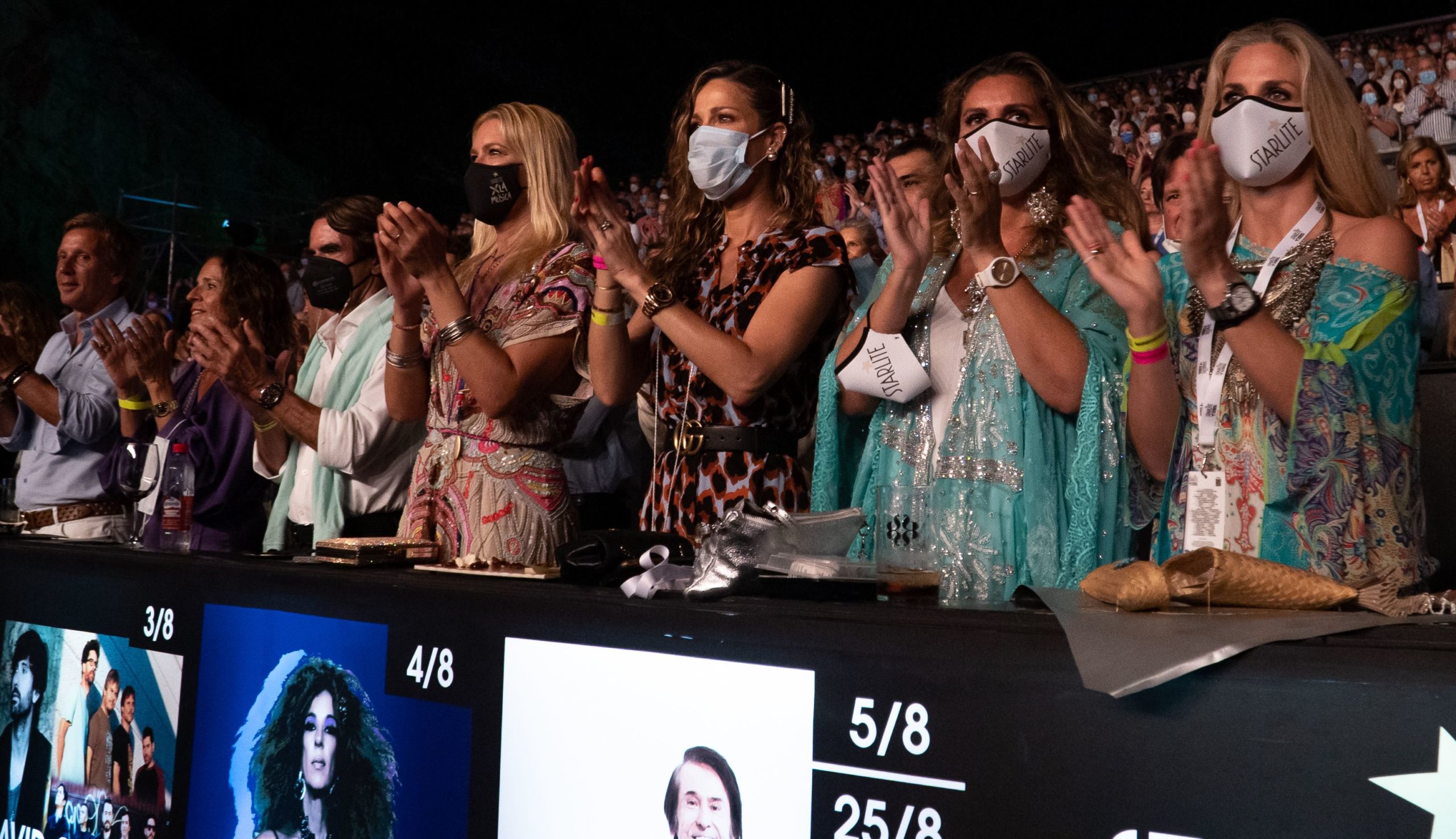 Entre los asistentes que acudieron al histórico concierto se encontraban el ex presidente José María Aznar con Ana Botella, la familia Gravier Mazza, Genoveva Casanova, Eugenia Martínez de Irujo y Narcís Rebollo, Jaydy Michel con Rafa Márquez, Carmen Lomana, Olivia de Borbón y Julián Porras, la Princesa Beatrice de Orleans, Pedro y Begoña Trapote, Rafael e Inmaculada Ansón, Raúl Sénder e importantes empresarios y presidentes de varias empresas del Ibex.