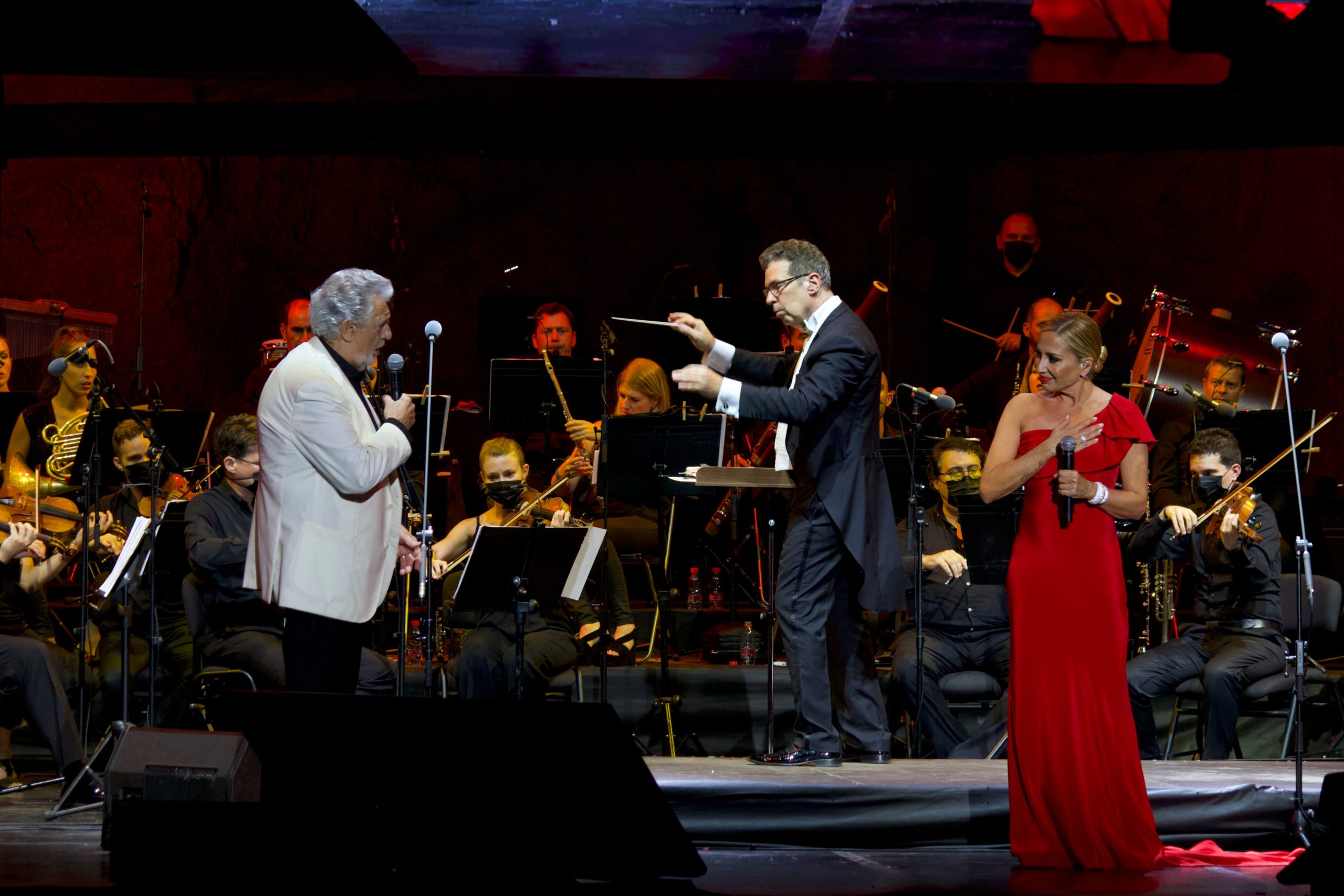 Le siguieron temas como ‘Calle el labio’ y ‘El día que me quieras’, cantadas por Plácido Domingo y Saioa Hernández o ‘Del cabello más sutil’, interpretada por Plácido Domingo en solitario y, como colofón final de un espectáculo apoteósico, el Himno de España escrito por Marta Sánchez y cantado a dúo por ella junto al barítono y ex tenor Plácido Domingo. «Esto es un acto de generosidad. Maestro, mil gracias», decía una Marta Sánchez visiblemente emocionada mientras el público les agradecía la experiencia única con una intensa ovación