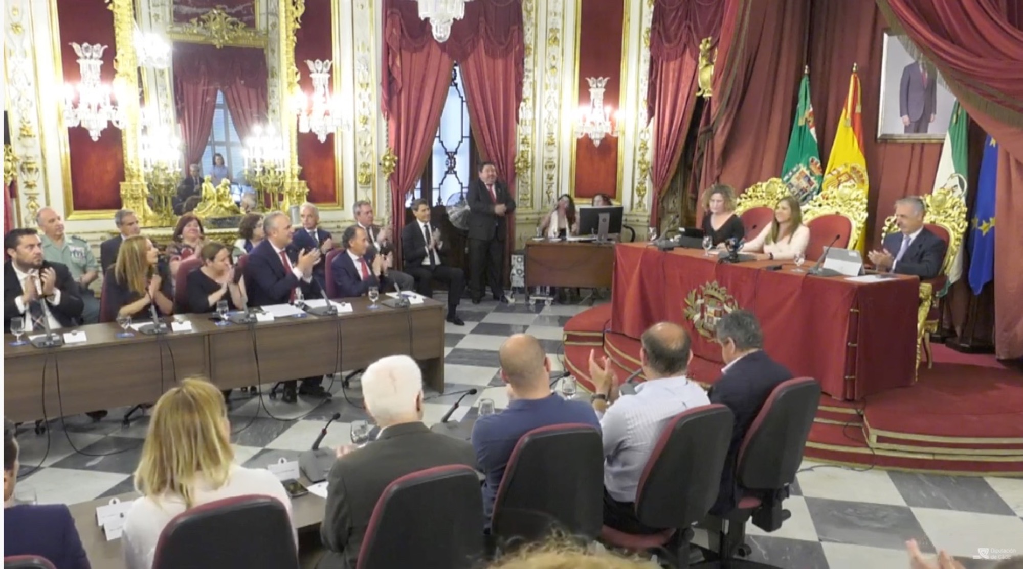 Seguidamente, Ruiz Boix tomó la palabra para dar la bienvenida a las distintas autoridades presentes, entre las que se contaban el delegado del Gobierno en Andalucía, Pedro Fernández, distintos alcaldes y alcaldesas, miembros del Congreso de los Diputados y del Senado, del Parlamento de Andalucía (entre ellos, el secretario general del PSOE de Andalucía, Juan Espadas), autoridades militares y representantes de la Universidad de Cádiz, y de los agentes sociales y económicos de la provincia. Luego tomaron la palabra los portavoces de los distintos grupos políticos presentes en la Diputación Provincial, que en líneas generales ofrecieron una mano tendida a Ruiz Boix y felicitaron a Irene García por su labor.