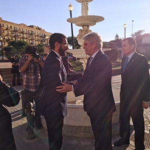 Antes de firmar en el libro de honor del ayuntamiento, el alcalde le ha dedicado unas palabras de bienvenida y le ha expresado su satisfacción por contar con la presencia del ministro. No obstante, también le ha manifestado el temor de que estemos ante una situación similar a la de 1969, con el cierre de la verja y las consecuencias que ello provocó en La Línea de la Concepción, con pérdida de un 30% de su población, de puestos de trabajo, etc. Juan Franco ha querido trasladar a Dastis la necesidad de diferenciar entre el resto de municipios de la comarca y La Línea, de manera que exista un plan individualizado para la ciudad por su situación social y su dependencia económica del Peñón: “reivindico que independientemente de los planes que haya para la comarca, la ciudad de la Línea tenga un tratamiento diferenciado.”