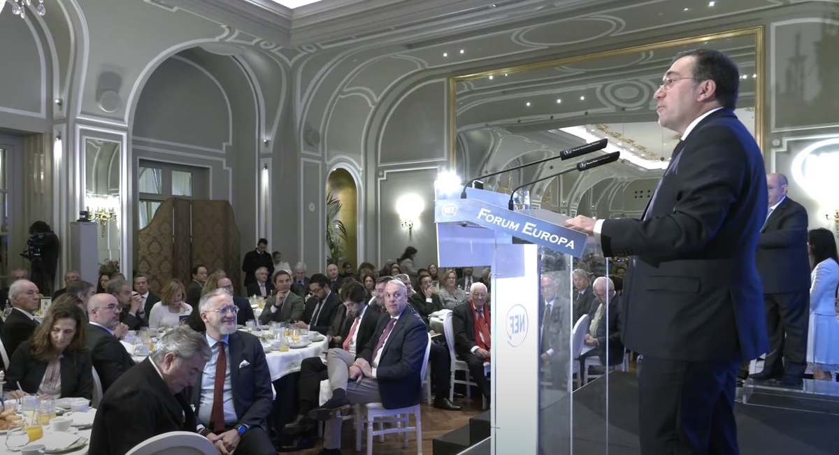 En su intervención en el Foro, el ministro José Manuel Albares desveló que en un fugaz encuentro en Davos con su homólogo británico, David Cameron, “hablamos del acuerdo sobre Gibraltar. Es algo que yo creo que ambas partes queremos, y lo que queremos es una zona de prosperidad compartida para Gibraltar y para el Campo de Gibraltar”.