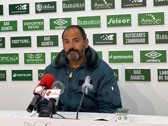«Tenía un plan de partido y me he equivocado. Aquí también falla el entrenador. No estuvimos cómodos con la manera que pretendía. Proyecté el partido de manera errónea y cuando cambiamos, tuvimos balón en campo contrario y mejoramos…Quiero dar las gracias a mis jugadores porque la primera derrota ha llegado en la novena jornada. Hemos hecho un gran fútbol, estamos en boca de todos y el vestuario es una piña. Ha sido una gran primera vuelta. Ahora a pensar en el Marbella…La derrota fastidia, pero estoy feliz porque el equipo dio la cara en la segunda parte. Repito que me equivoqué en la estrategia del partido y perdimos los primeros 45 minutos».