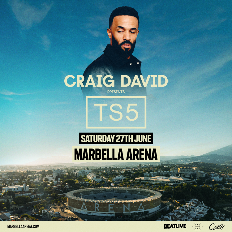 Marbella Arena, el recinto ubicado en la antigua plaza de toros de Puerto Banús, será el escenario del espectáculo TS5 del artista británico Craig David el próximo 27 de junio de 2026, dentro de la serie de conciertos internacionales que traerá a la ciudad la promotora musical Beat Live. Considerado uno de los formatos en directo más potentes y demandados de la actualidad, TS5 llegará al recinto marbellí como una de las grandes citas musicales del verano en la Costa del Sol.