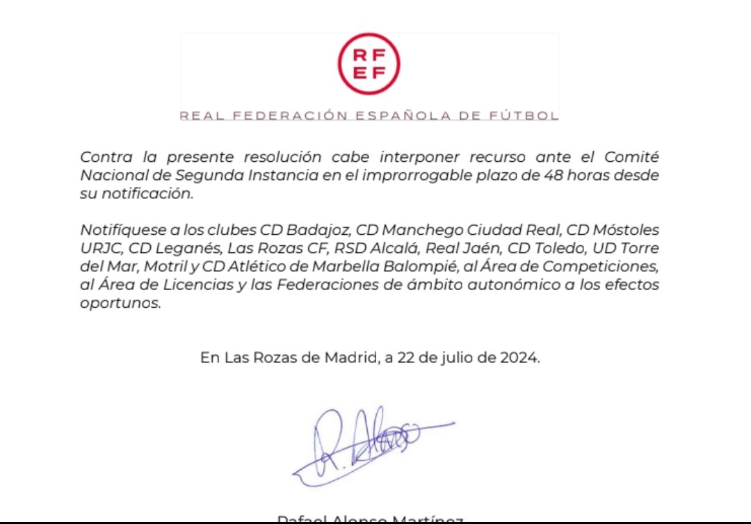 Hoy lunes la RFEF ha confirmado que la plaza del CD Ursaria en la Segunda RFEF será ocupada por el CD Móstoles. La resolución es oficial y ahora tiene tres días para realizar la inscripción. En caso negativo el puesto sería, por orden de prioridad, para el CD Leganés B y la RSD Alcalá.