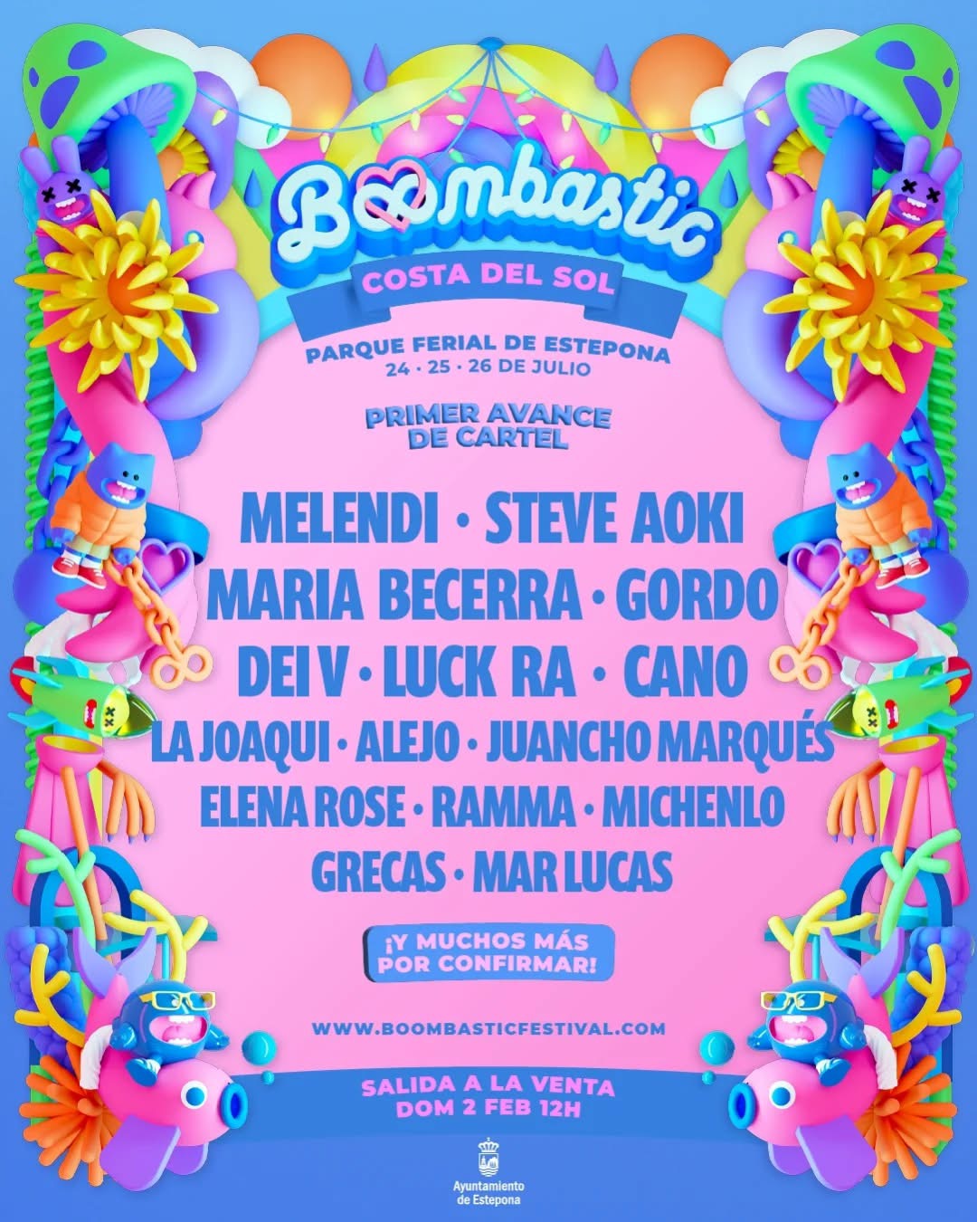 El alcalde ha presentado también en FITUR el Festival de Música Boombastic, que se celebrará en el Parque Ferial de Estepona durante los días 24, 25 y 26 de julio. El primer avance de cartel cuenta con los artistas: Melendi, el icónico DJ y productor Steve Aoki, María Becerra, Gordo, DEI V, Luck Ra, Cano, La Joaqui, Alejo, Juancho Marqués, Elena Rose, Ramma, Michenlo, Grecas y Mar Lucas. A esta lista se irán sumando más nombres en los próximos meses.