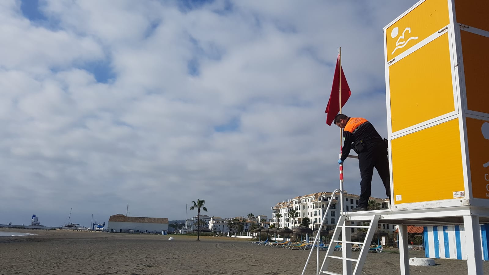 Desde primeras horas de la mañana del sábado, diferentes grupos de operarios municipales, han precintado estos lugares y se han colocado banderas rojas en las playas.