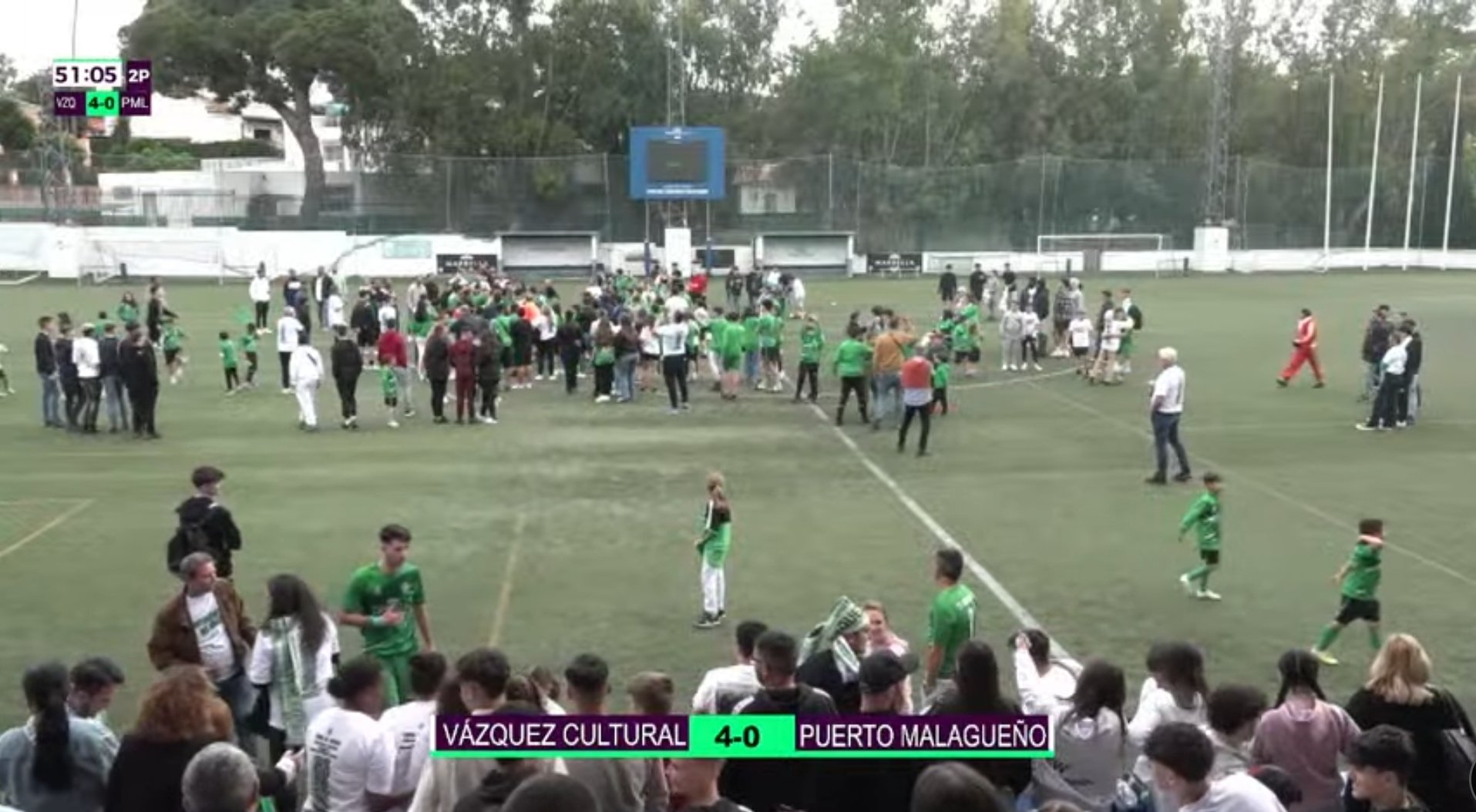 Con un llenazo en el estadio Carlos Sánchez Navarro, los marbellíes han sido claros dominadores del encuentro, que ya ganaban por 3-0 al descanso con goles de Moru( 20´), Adama( 34´) y Ecay ( 45´). En la segunda parte cerró la tarde a los 75´ Adama. Al final, la alegría en las gradas y la invasión pacífica del campo por la chiquillería. Se vivieron, y más que justificadas, las escenas de celebración.