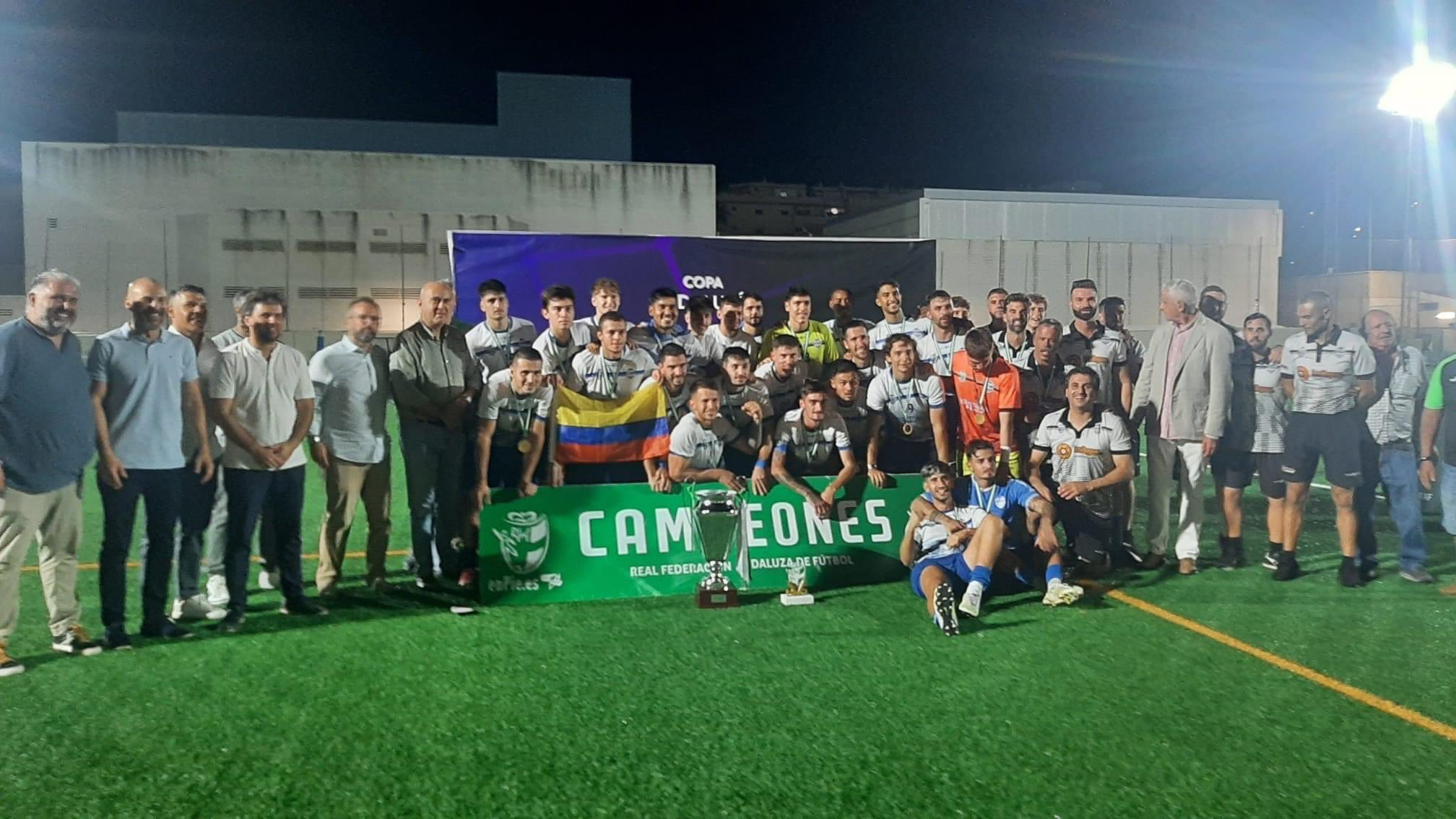 El CP Mijas Las Lagunas lo ha logrado. Se ha proclamado campeón de la Copa de Andalucía de la RFAF, tras doblegar en el partido de vuelta( 4-2 ) al Chiclana CF. Ya en la idea habían ganado 0-1. Un equipo con 4 jugadores de Marbella en sus filas y que ahora está a solo una ronda( se tiene que sortear el rival entre las provincias de Ceuta, Melilla , Córdoba y Murcia ) de jugar la Copa del Rey de la RFEF ante un club de Primera División.