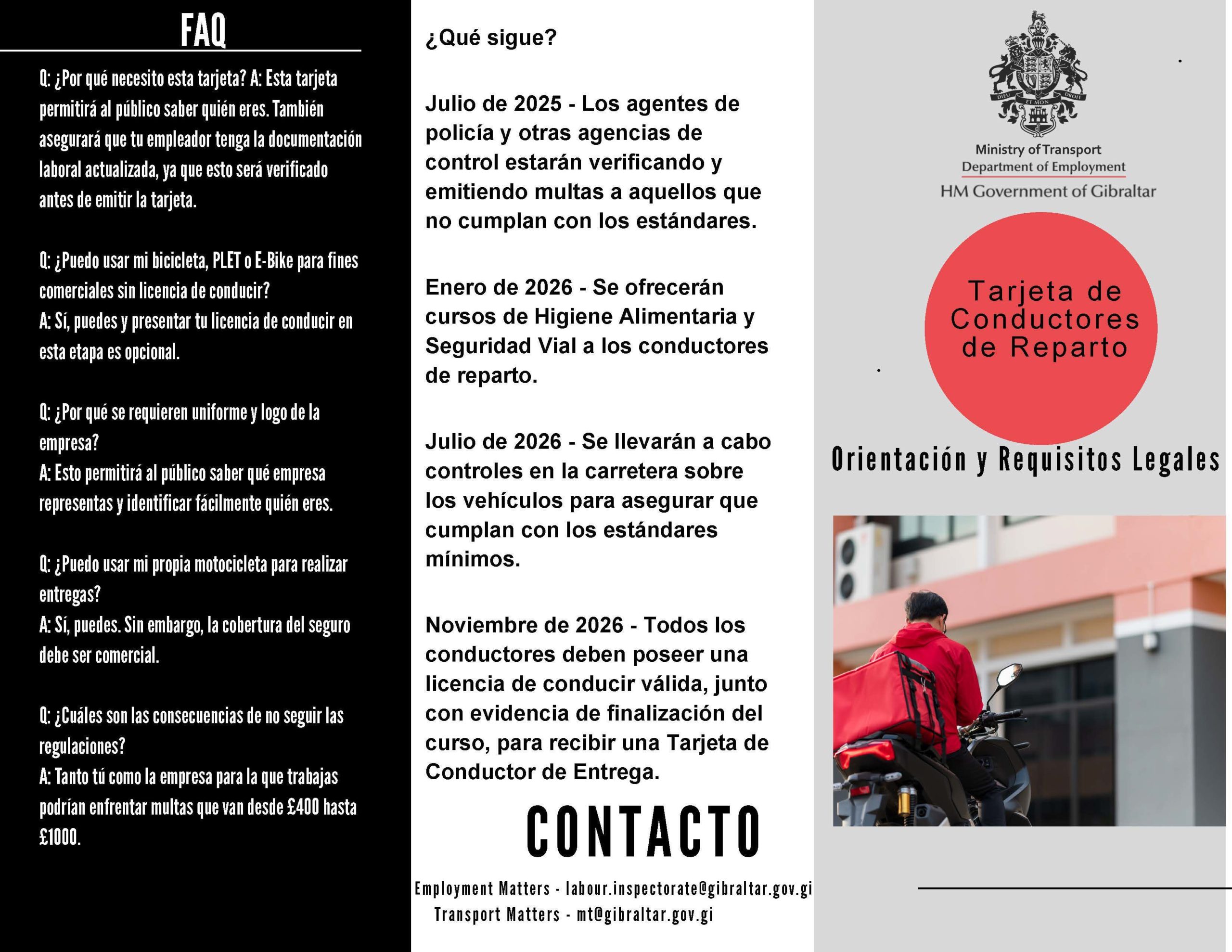 En relación con esta iniciativa, el Ministro de Transporte, John Cortés, señaló: “Estas reformas representan un paso adelante necesario y mesurado en el reconocimiento del papel que desempeñan los servicios de reparto de comida a domicilio en Gibraltar, al tiempo que garantizan que quienes trabajan en el sector lo hacen dentro de un marco jurídico claro y justo…Nuestro objetivo es apoyar a los operadores responsables, mejorar la seguridad pública y mantener los estándares que la ciudadanía, con razón, espera”.
