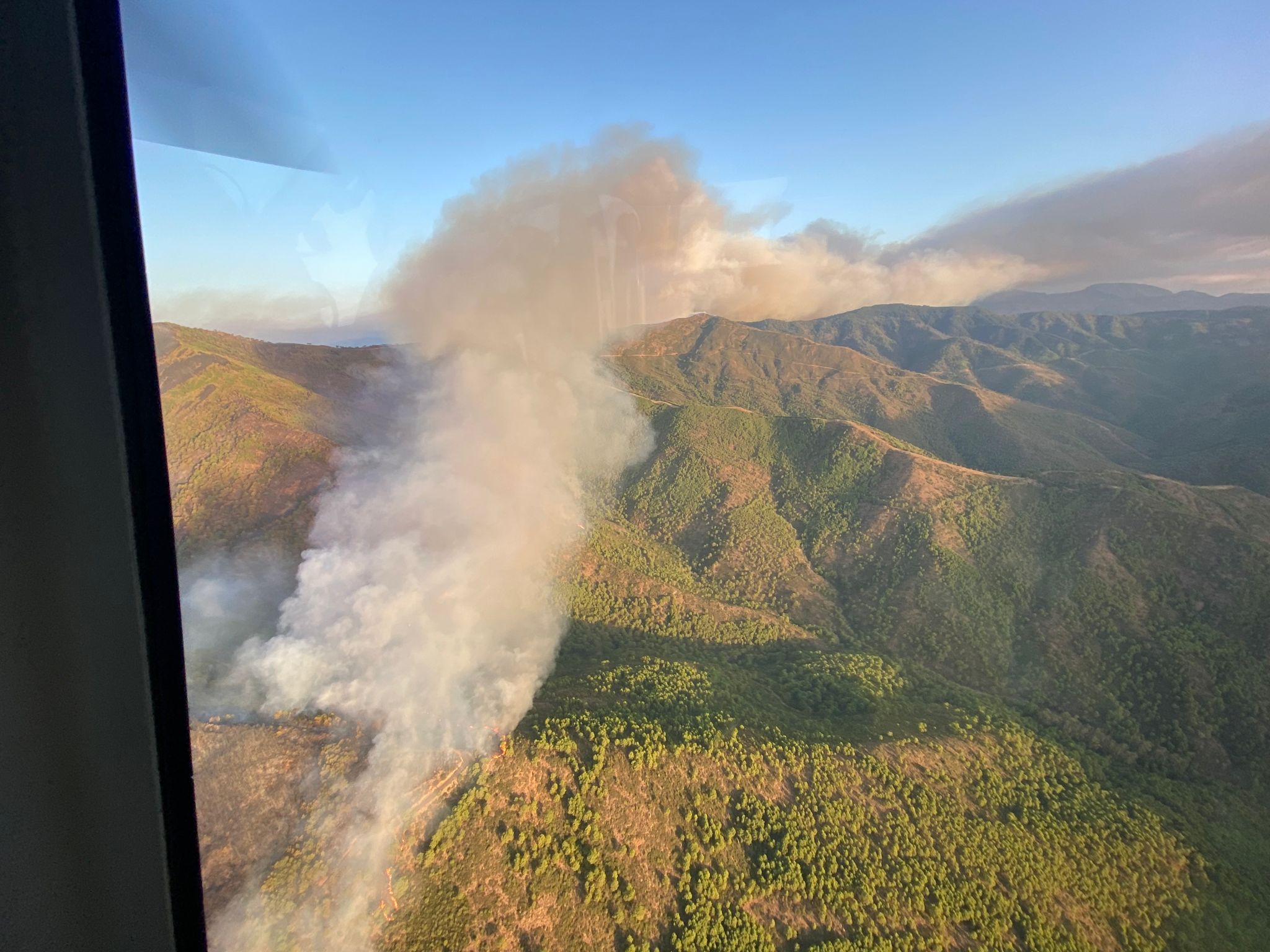 La lucha contra el incendio cuenta ya con 350 profesionales, 20 vehículos pesados de extinción y tres máquinas pesadas. Esta mañana se han incorporado 41 medios áereos.