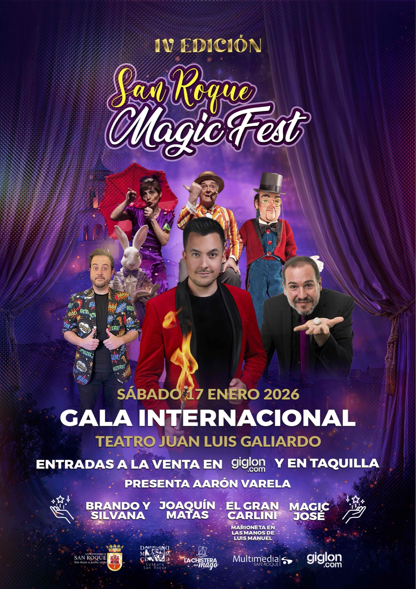 Por otra parte el San Roque Magic Fest tendrá dos actuaciones en el Teatro Juan Luis Galiardo. Así, el sábado 17 enero a las 20.00 horas se ofrecerá la Gala Internacional, en la que actuarán los argentinos Brando Silvana, y Joaquín Matas, “El Gran Carlini”, una marioneta en las manos de Luis Manuel, y Magic José. Finalmente, el domingo 18 a mediodía el mago Francis Zafrilla protagonizará la Gala de Magia Infantil, con el show “Confeti”, un espectáculo muy divertido pensado para los niños y niñas.