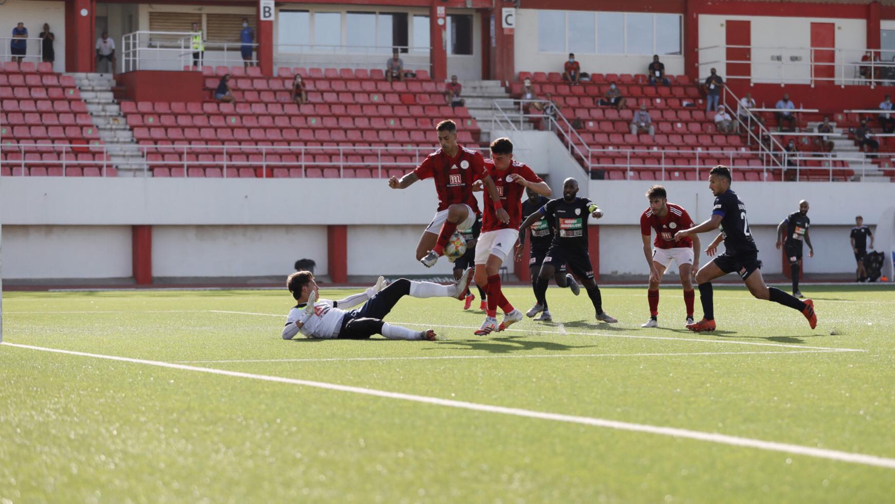 La primera parte fue igualada y con inicial control del balón de los visitantes, pero la primera gran oportunidad fue del Lincoln con un córner muy cerrado que lanzó Vritto( minuto 11) y desvió como pudo el portero. Dos mkinutos más tarde un desajuste defesnivo local propició la escapada de Maah y Lolo Soler en una estirada a córner evitó el gol. Poco a poco el equipo llanito fue tocando mejor el balón con Kike Gómez arriba para el peligro. Y en una combinación entre este y Lee Casciaro, a los 36´, llegó el 1-0. Recibido con algarabía por los jugadores ante un Victoria Stadium vacío por el Coronavirus. De ahí al final intentaron los luxemburgueses reaccionar pero la seriedad de la zaga del Lincoln se impuso, llegando al intervalo con el 1-0.