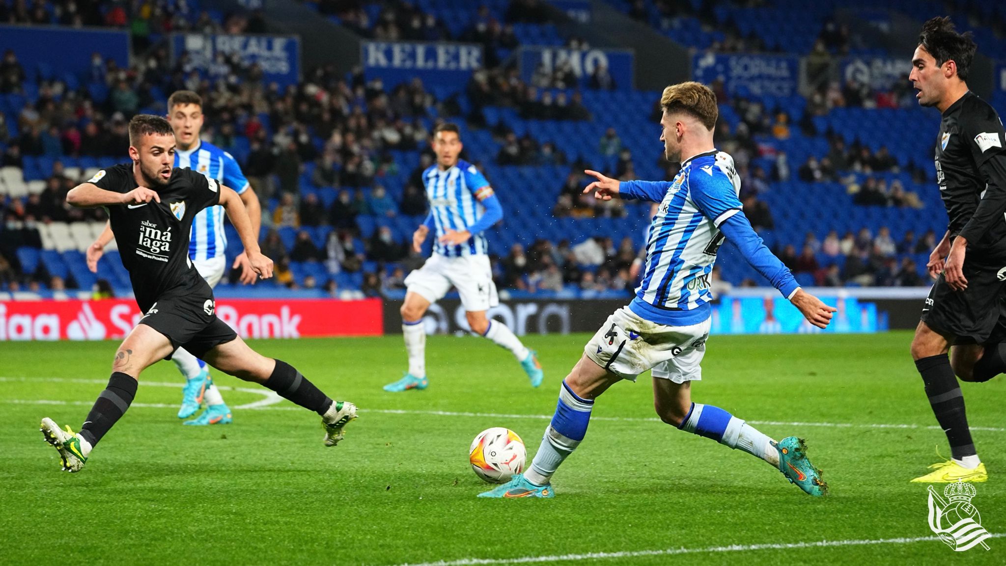 El Málaga CF cayó derrotado en San Sebastián en su visita al ‘Sanse’. Los locales Karrikaburu (35’) y Roberto López (52’) firmaron el resultado final. El cuadro blanquiazul -de negro en esta ocasión- visitó este sábado el Reale Arena cuatro temporadas después de su último duelo en el antiguo Anoeta.