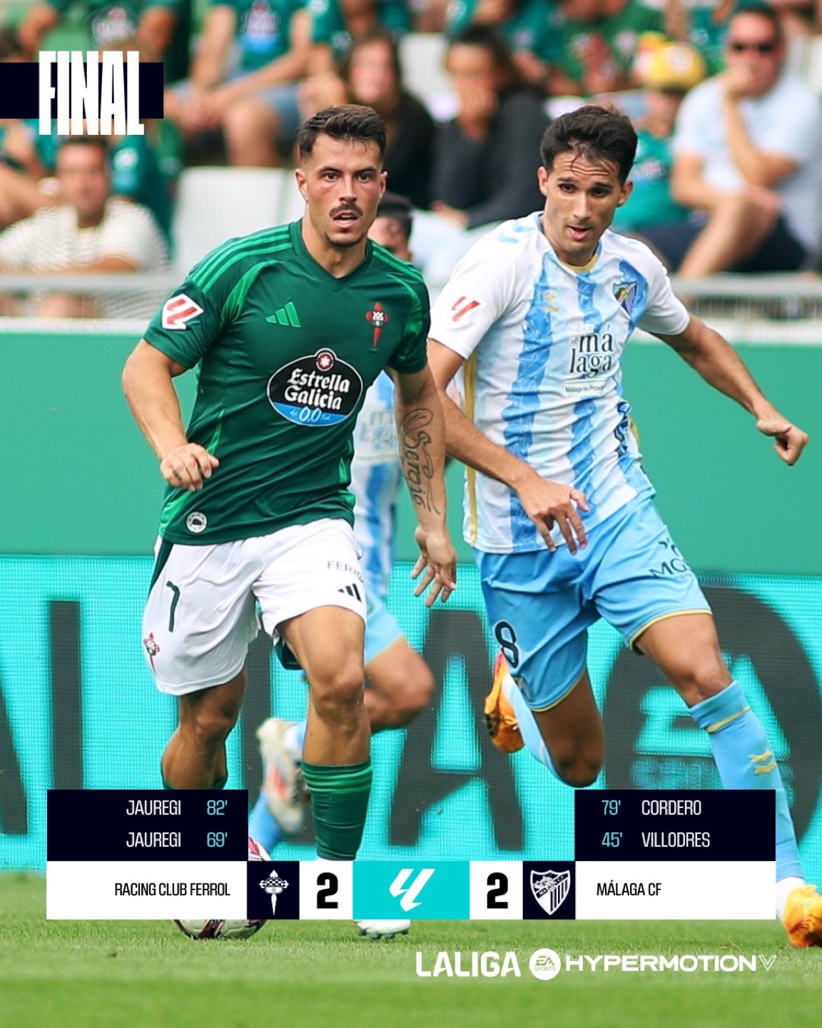El Málaga CF ha vuelto a la Segunda División sumando un punto( 2-2 ) en su viaje al campo del Racing Ferrol. Un partido totalmente alocado donde pudo pasar de todo y en el cual los blanquiazules se adelantaron dos veces en el marcador. Más de 7.500 espectadores en A Malata, donde se notaron los seguidores blanquiazules.