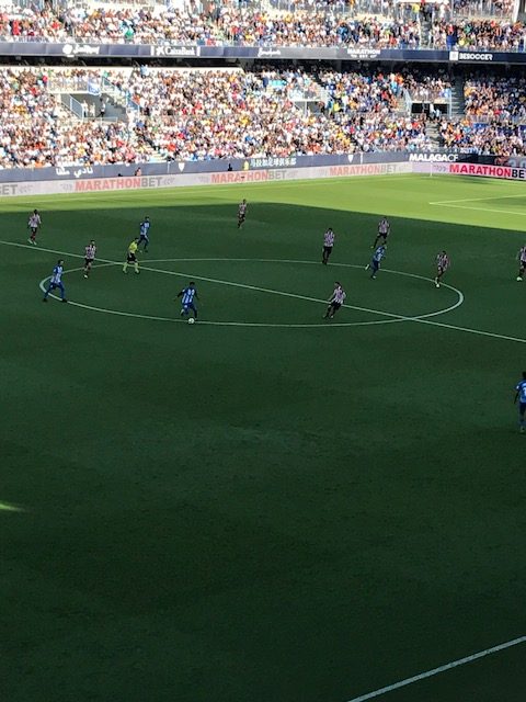 La primera acción a los dos minutos con un dudoso penalti por caída de Muniain en el área en un focejeo con Luis Hernández. La máxima pena la transformó en gol Aduriz. Mal inicio para los de Michel necesitados de una reacción, pero el Málaga mejoro y dominó los últimos veinte minutos creando peligro en la zona vasca. Un paradon de Kepa en el minuto 26 a cábezazo de BOrja bastón presagiaba el empate que llego a los 34 minutos con un golazo de Rolan con control y disparó con efecto a la escuadra. El Si se puede se volvió a oír en La Rosaleda. Incluso Adrian en el tuvo el gol pero anduvo lento. Se llegó al descanso con la igualada en el marcador.