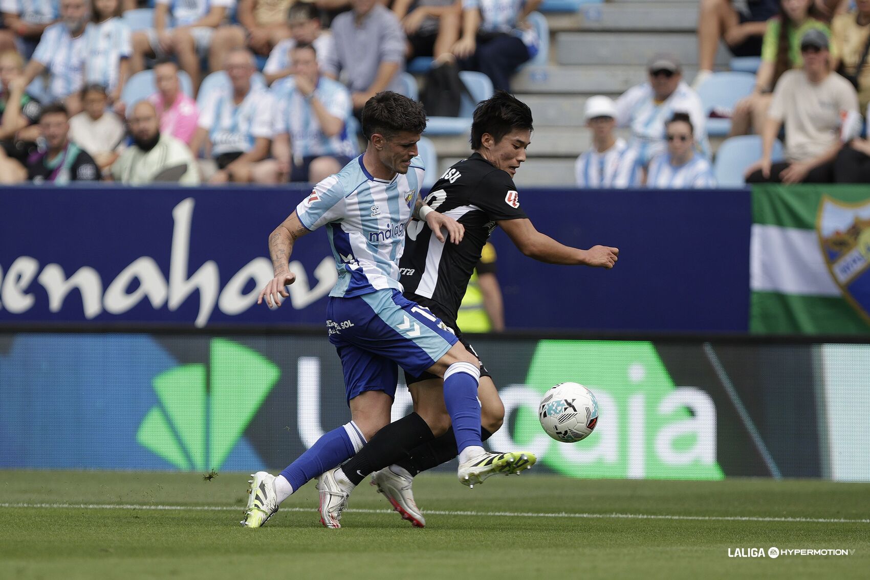 Tras diez minutos de tanteo iniciales, David Larrubia generó la primera ocasión malaguista con un tiro cercano al palo derecho (11’). El Andorra de Ibai Gómez, fiel a su esquema de juego combinativo en ataque y línea defensiva adelantada, tenía dificultades en la construcción gracias a la presión alta blanquiazul.