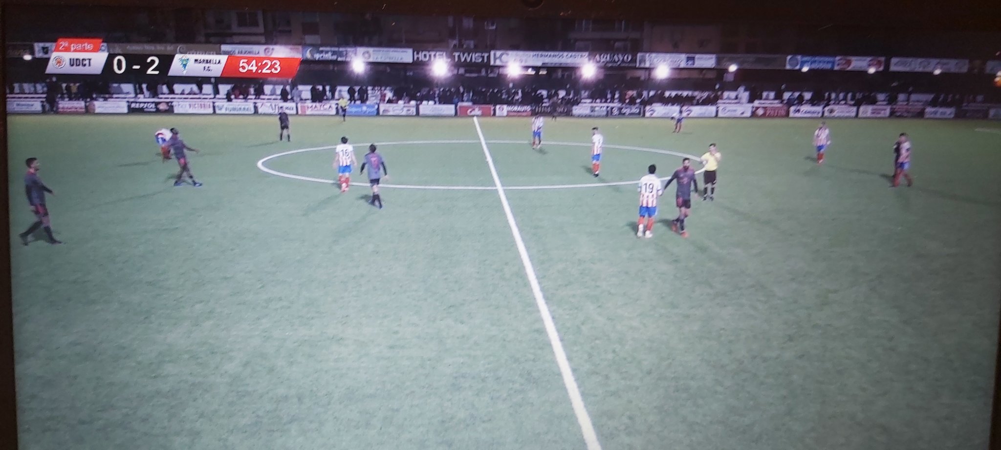 Árbitro. Fernández Moral. En el UDC Torredonjimeno, tarjeta amarilla para Adri. Expulsó con roja directa a Mario Martos. En el Marbella FC, tarjeta amarilla para Ortuño. Expulsó con roja directa al entrenador Abraham García.