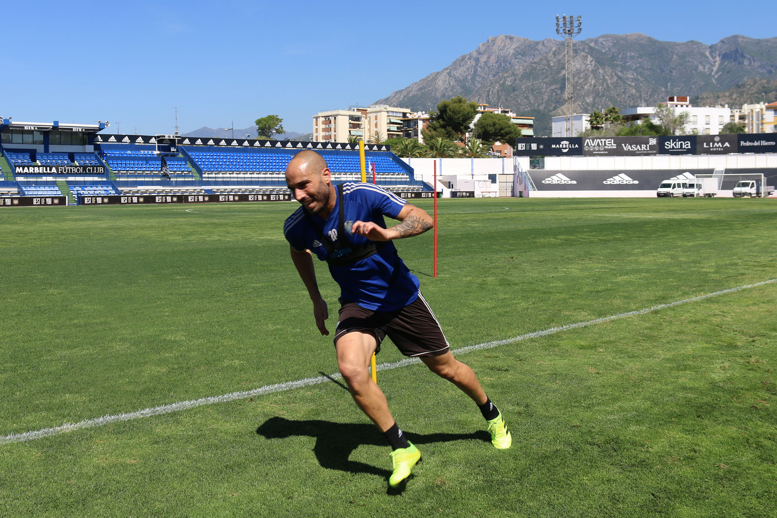 El Marbella Fútbol Club ha regresado esta mañana al Estadio Municipal Antonio Lorenzo Cuevas. Después de casi 70 días sin poder entrenar sobre el césped, y teniendo que trabajar en solitario en sus casas, los jugadores han recuperado la sonrisa.