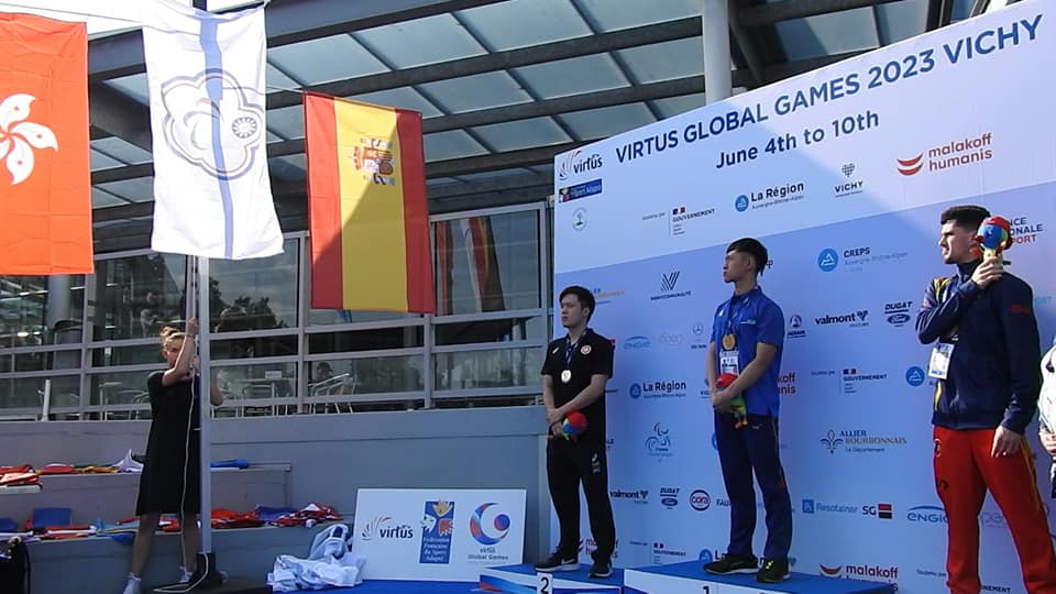 Virtus World Games que se celebran en Vichy( Francia ) ha sumado una medalla de bronce. En su primera prueba, en los 200 metros espalda, ha rebajado su marca personal en 4´´ a los 2´ 28´´ 82 d.