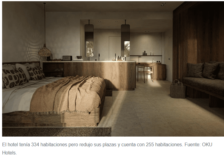 El establecimiento, que antes de la transformación contaba con más de 334 habitaciones, ahora dispone de 255 habitaciones y suites, varias piscinas infinitas y cuatro restaurantes con cocina de Japón, Asia y Sudamérica. Además, tiene un spa de 2.000 metros cuadrados con piscina cubierta, hammam y patio de meditación. El hotel también dispone de gimnasio, pistas de tenis, de pádel y una polideportiva. Por primera vez, OKU ofrece un club infantil con experiencias como artesanía local y talleres de descubrimiento para niños de hasta 12 años, así como un programa para adolescentes con deportes acuáticos y fogatas en la playa.