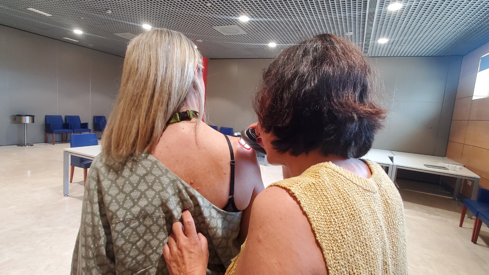 La exposición excesiva sin protección a las radiaciones UV es el factor de riesgo más importante para el desarrollo de los diferentes tipos de cáncer de piel. Con una fotoprotección adecuada, los daños solares se pueden evitar. Por eso, hoy, el Día Mundial de Cáncer de Piel, en esta formación para los trabajadores de AENA, se ha querido concienciar a los participantes sobre la importancia de la prevención junto a un chequeo cutáneo, realizado por ambas profesionales y que han ido acompañados de asesoramiento personalizado.