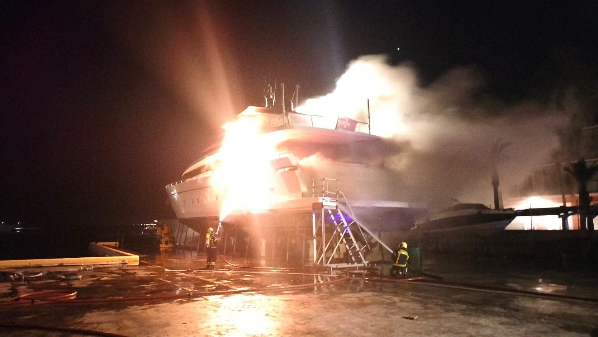 A la hora de este comunicado los Bomberos continúan proyectando agua sobre el barco incendiado para mantenerlo frio y evitar una reactivación del fuego.