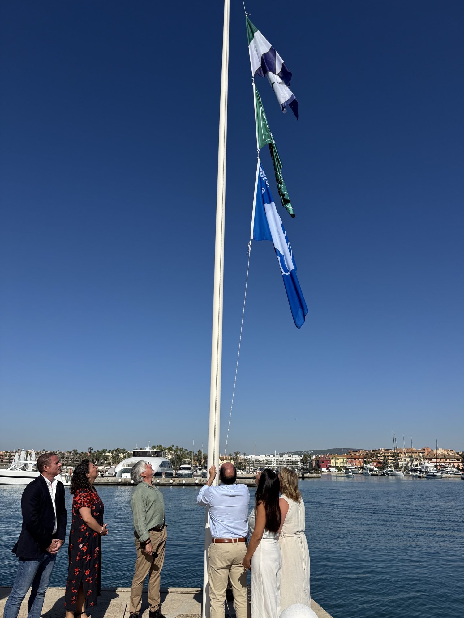 Señaló el edil que “no todos los municipios tienen la suerte de disfrutar de seis banderas azules como nosotros, entre ellas la de Puerto Sotogrande. El requisito esencial en una bandera de puerto deportivo es la limpieza de las aguas, y como estas instalaciones la han ido manteniendo todo este tipo, es un elemento que se suma a la calidad de la excelencia turística de nuestro municipio”.