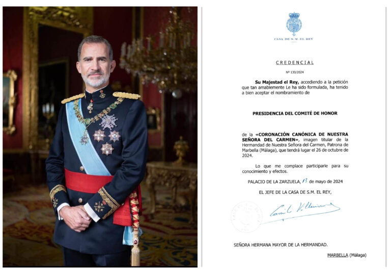 El Rey Felipe VI presidirá el Comité de honor de la coronación canónica de la Vírgen del Carmen de Marbella