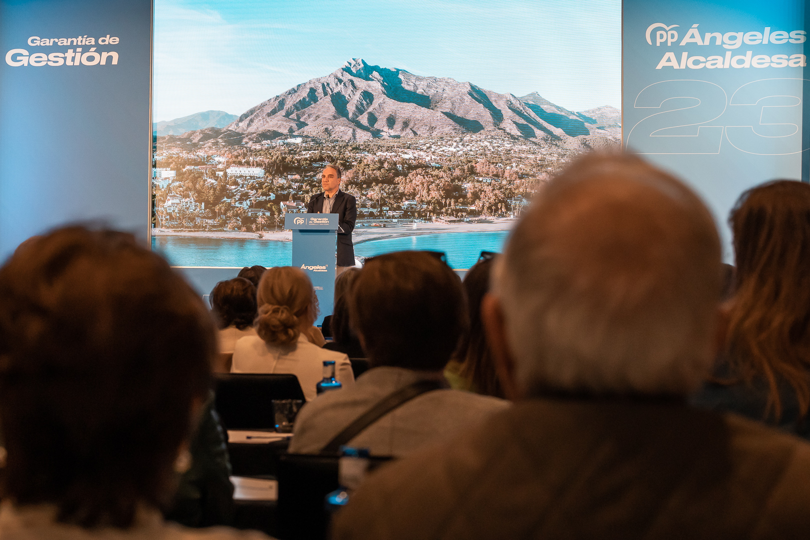 «Yo no he venido a ver a Ángeles Muñoz. Yo estoy con Ángeles Muñoz». El coordinador general del PP, Elías Bendodo, ha mostrado hoy su respaldo a la labor desarrollada por el Gobierno del PP en la ciudad y ha reivindicado la ‘garantía de gestión’ que supone la formación popular para los vecinos del municipio, un éxito que, según ha subrayado, tiene una razón fundamental: «Para Ángeles Muñoz lo primero es Marbella, lo segundo es Marbella y lo tercero es Marbella».